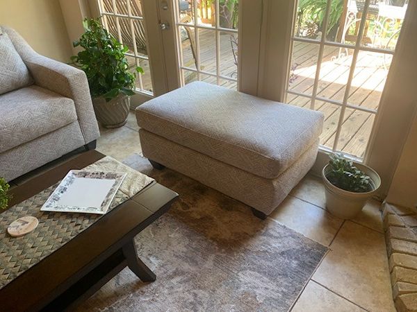 Downsizing for relocation and offering a complete, well-cared-for living room ensemble. Includes sofa, love seat, oversized chair, three end tables, coffee table, ottoman, lamps, and a coordinating rug. Only two years old, purchased from American Furniture in Conroe. Owned by a married couple—no pets, no small children. Everything is in excellent condition and ready to elevate your space with comfort and style.