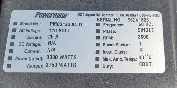 Coleman Powermate 3750 Generator Photos