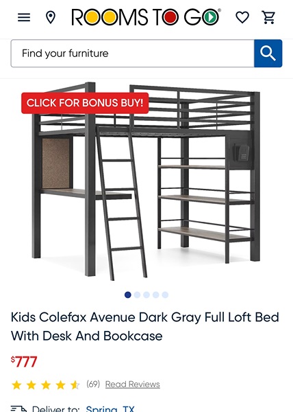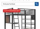 Full size heavy duty gray metal bed with wood desk and shelves. Originally purchased from Rooms to Go for over $700. Includes bunkie board. Excellent condition.