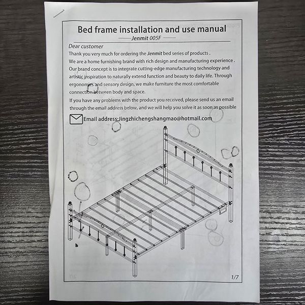 Full Size Bed Frame. Parts of this bed frame have been damaged but it can still be assembled and used. 4 of the support bars are bent but can still be used (Photo 3). One of the footer poles it missing a ball point (Picture 2). Parts 12-14 are missing (Photo 4) a plug, led lights, and zip ties which are not necessary for anyone that just wants a bed frame. Located in The Woodlands 77381. Crossroad kuykendahl road and research forest drive. Delivery is available for a fee.