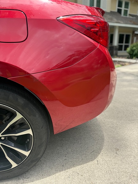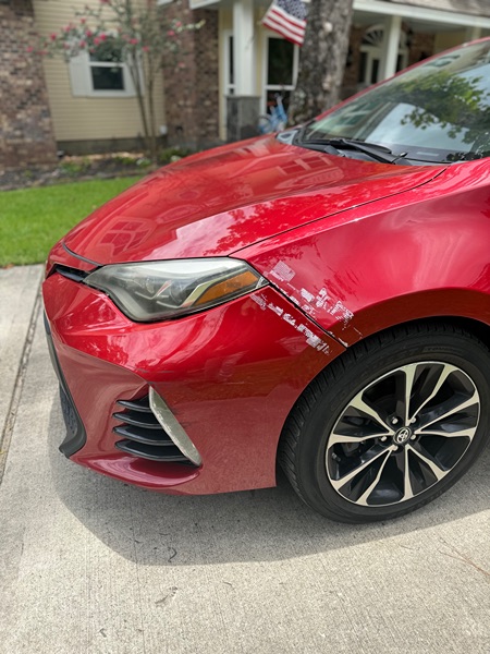 Minor dents and scrapes around the car and minor problem with the front bumper