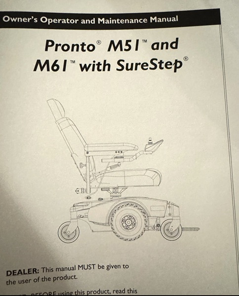 Stylish, sleek and graceful describes the Pronto M51. The M51 boasts true id-wheel drive technology for exceptional maneuvering in small spaces. The low seat to floor height offers optimum stability and comfort. The sure step technology with "six wheels on the ground" provides a smooth transition over thresholds up to 2 inches, while maintaining stability. The powerful 350 watt motors provide reliable performance for up to a 300 lb. weight capacity. This unit is an excellent choice for maneuverability in the home and over light grass and gravel outdoors. Upgraded seating offers a semi-recline feature to relive back pressure and flip-up width adjustable armrests.