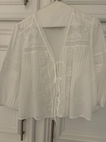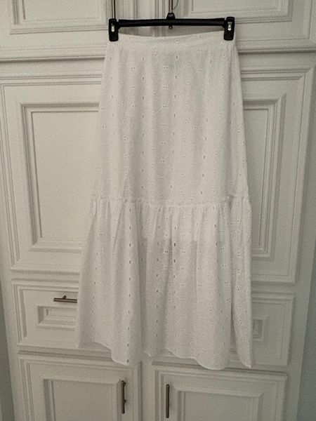 Ready for the holiday. Fully lined are Sequenced Jacket, worn once, Black Velvet Slacks, Short sleeve top blue/white, White Eyelet Skirt. never worn. There are 11 pieces. Medium size 8.