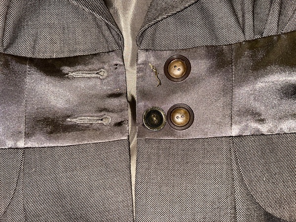 This is a nice quality women's brown suit in very good condition from smoke free home. There's very minor wear/pilling, but it's not noticeable due to the fabric color and pattern. The band inside the slacks reads StatelyHorse (I think), but there are no size/fabric/origin/garment care tags in either piece. Please see measurements for sizing. The jacket has a small area where the lining has been snagged near the bottom (pictured) and is missing a button. I have 2 vintage replacement buttons if you'd like them. $5