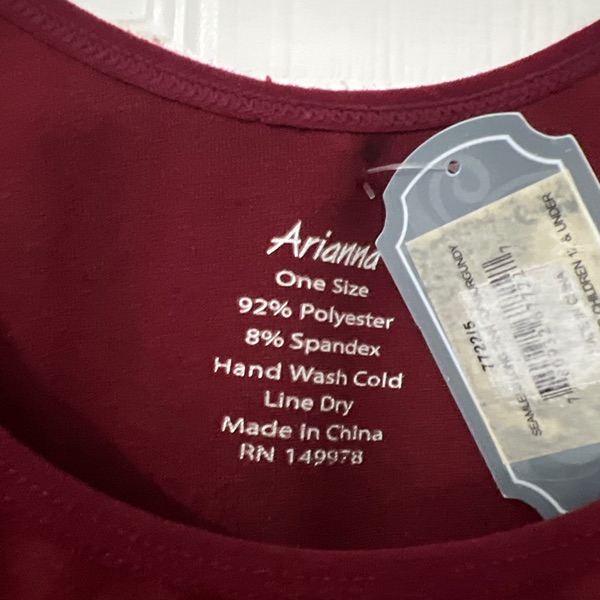 Arianna By Howards Burgundy Shell Spandex Dress One Size. Fall Career Color. A shell dress can be dressed up or down based on the shoes and jacket you pick to wear with it. Dress is a super soft 92% polyester 8% spandex. It will be form fitting and will stretch to fit.