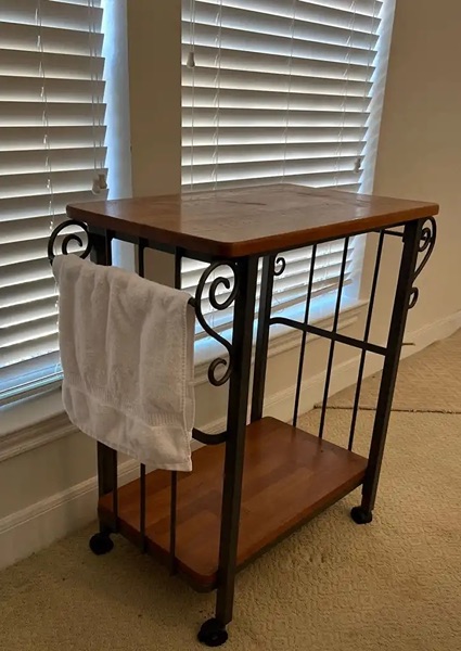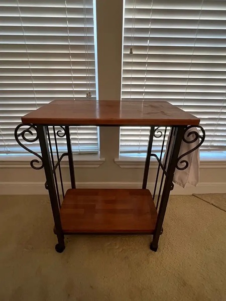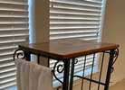 Sturdy kitchen or bar cart on wheels. Wood and dark gray metal. Has a bar on each end that you can use as a towel bar. Approx. 30” x 18” x 31 1/2”…$60 firm