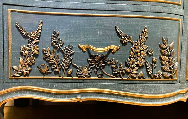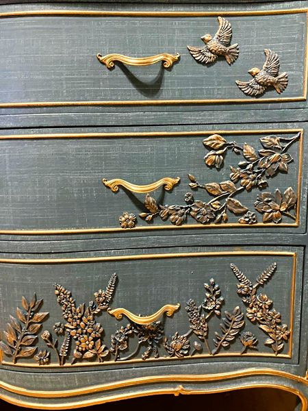 Elegant Drexel Touraine, Denim Textured Dresser w/Hand Poured Floral & Bird Molds Photos