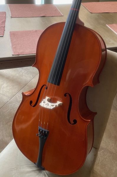 Johnannes Kohr 3/4-size cello, model GW402352, built in 2015. In excellent condition. Used for one school year by 8th grader. With bow. Comes with soft-side case that can be worn as a backpack or carried like a brief case. Case is in excellent condition.