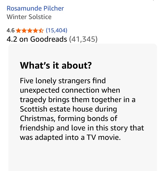 Winter Solstice hardcover fiction from bestselling author Rosamunde Pilcher. Very good condition from smoke free home. $2