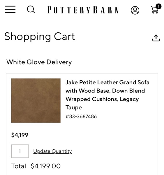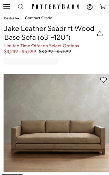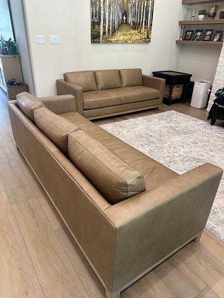 *BRAND NEW* Pottery Barn custom leather sofas delivered last week (after three month wait). The leather is very high quality and they are beautiful, comfortable sofas. Unfortunately, the size isn't ideal for our needs.