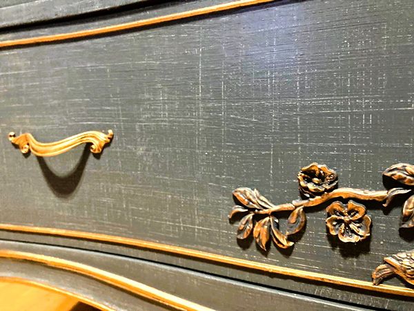 -The drawers are sturdy, dove tailed and glide smoothly, with original polished and lightly gilded hardware.