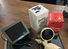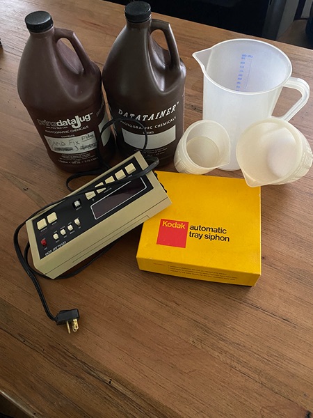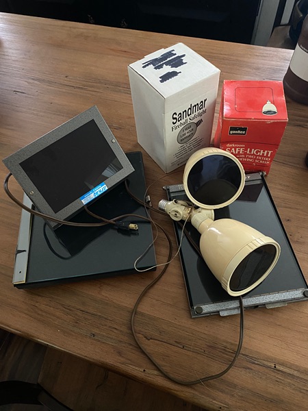 Everything you need to set up a darkroom. Beseler 23Cll enlarger and various safe lights, timers, developing and printing trays, film developing tanks, beakers, etc for sale. All you need except for chemicals and paper. Movers lost the base to the enlarger, but it is an easy fix. All of the screws are available to be used to set onto a new base, which can easily be made from a small piece of plywood or your choice of wood for base. Everything is clean and gave me great joy for many years. We have downsized and there is no room for my darkroom now.