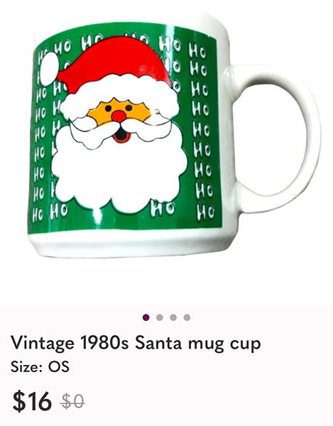 Google says these are both vintage, and that's probably accurate, as they are from my mom's lifelong Christmas mug collection. They were not purchased as a set, just similar Ho Ho Ho themed. Very good condition from smoke free home. $5/both