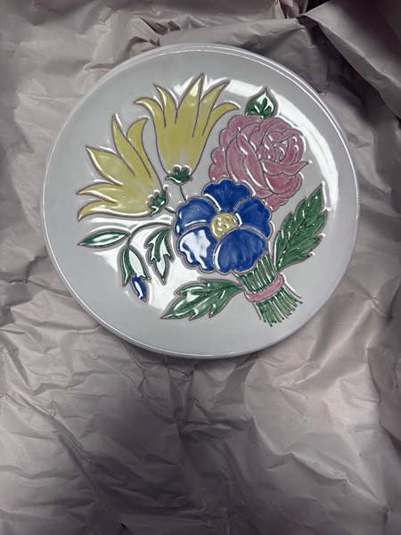 The plates appear to be in excellent vintage condition based on the photos (no visible chips, cracks, or crazing), wrapped carefully in tissue paper, suggesting they’re well-preserved collectibles rather than everyday dinnerware.