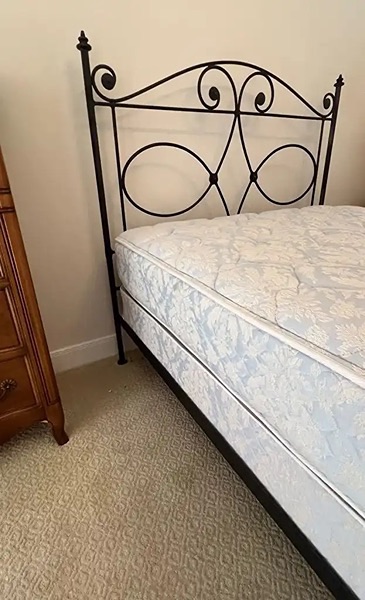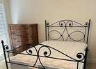 Elegant Pottery Barn wrought iron bed… frame, headboard, footboard with mattress and box spring included! Was used in a guest room. Full size, complete bed set, ready to go!…$550