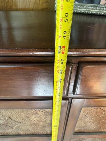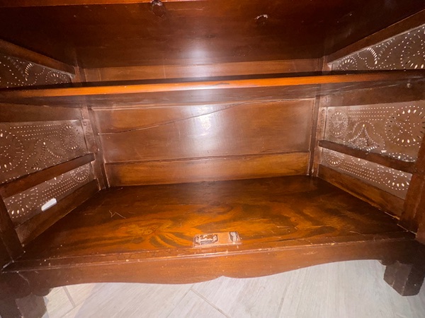 This antique pie safe from the 19th century is a unique piece of furniture with a history rooted in Pennsylvania or Southern American craftsmanship. Made of wood with dimensions of 48 inches in height and 39 inches in width, this pie safe exudes a charming and rustic antique style. Perfect for storing pies or other baked goods, this piece is a functional and decorative addition to any home looking to add a touch of vintage charm.<div>Another family piece passed down since 18th-19th Century. Great condition, except for scratches on top due to lamps, etc. Beautiful piece