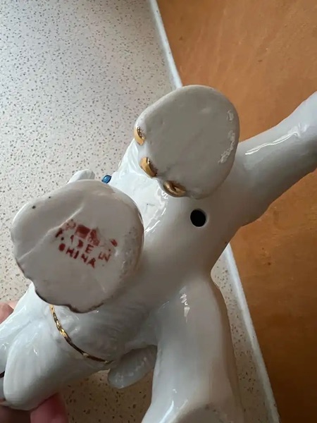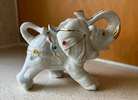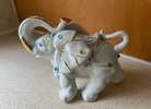 Porcelain Elephant Figurine, Trunk Up for Good Luck. Approx. 5" long x 2.5" wide x 4.25" tall.