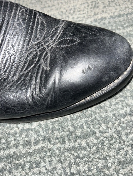 Black cowboy boots, size 9 EE, style 16750, leather upper and lining. Overall good condition, leather does have wear and scuffs in places (pictured). $25