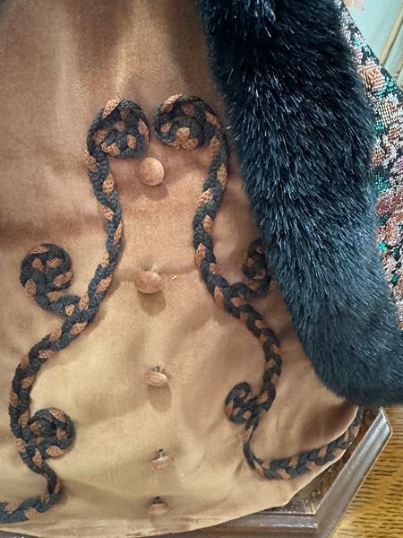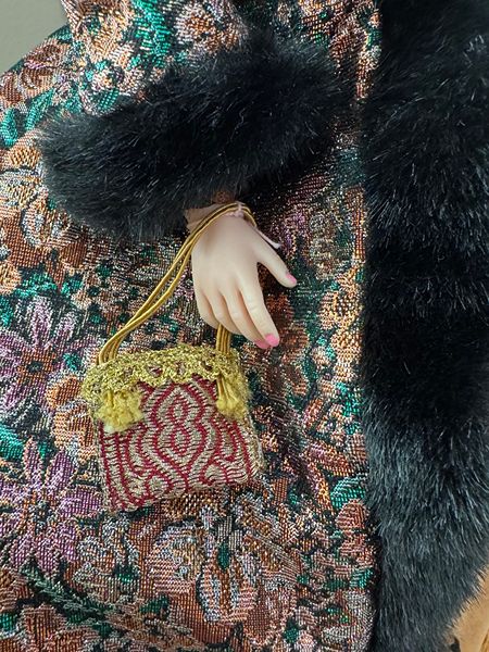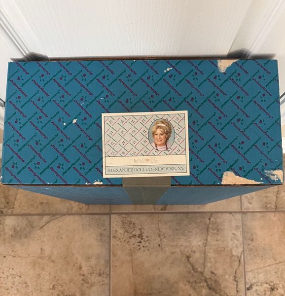 Elegant doll perfect for collectors. Madame Alexander 21 inch "NATASHA" #2255 Portrait Series, made in 1990. Natasha is wearing a brown dress with braided trim around the hem and up the front of the skirt. There is lace around the collar and a pin at the neckline. Her coat is paisley brocade with fur around all the edges and on the sleeves. Hair is blonde and in braids around the back of the head. The hat covers her head with fur around the edges. Her jewelry is the pin at the neckline, a 'diamond' ring on the left hand. She also carries a small gold purse. Undies are white with pantaloons, stockings and brown high heel shoes. In original box with wrist tag. Also comes with display case.