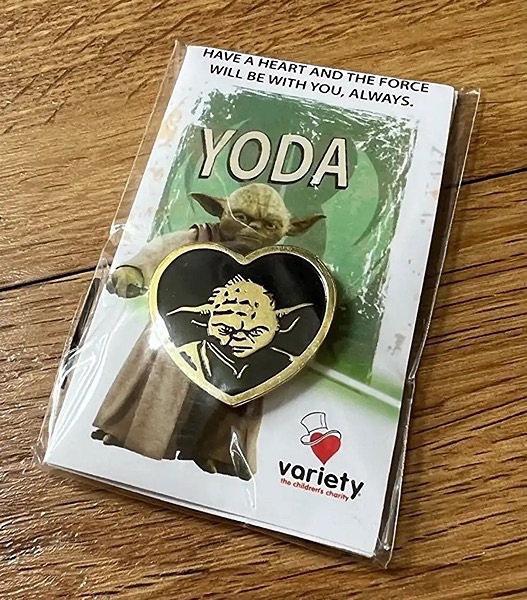 The Yoda pin was available for purchase through movie theaters and online, typically with a donation to Variety.