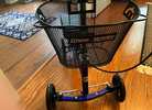It is the nice deluxe scooter with big wheels suitable for indoor/outdoor use and a steering mechanism. It also has a hand break.