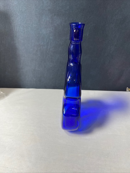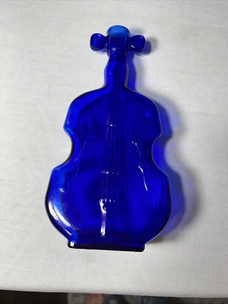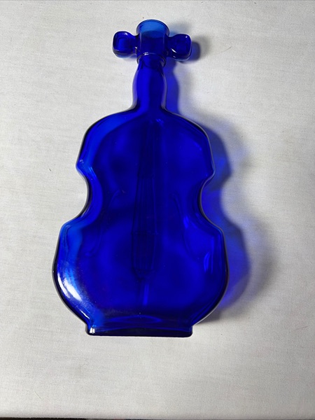 Beautiful Vintage Cobalt Blue Glass Violin Or Cello Shaped 8” Bottle. No chips breaks or cracks. Photos