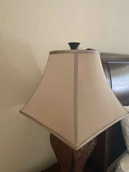 2 Lamp set for $80 ($40 each) - Westwood Collection - these traditional-style lamps have etched detail on the lamp base and black trim. 3-way turn sweitch for multiple light settings, harps, finials, rectangular shades and 80" cords.