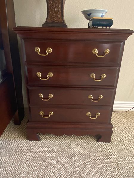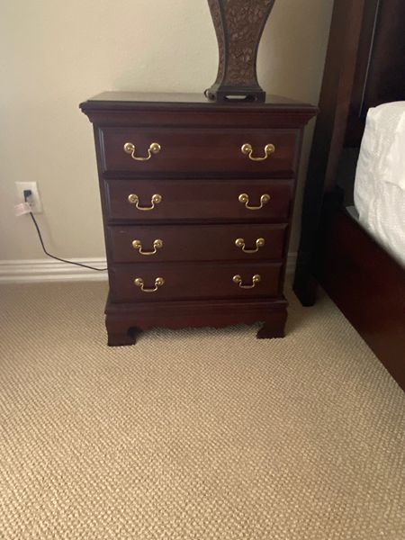 Nightstands - set of two nightstands - $250 ($125/each) if sold separately - four-drawer nightstands constructed of solid cherry hardwood and made in the U.S.A. Drawers are accented with double brass bail pulls.