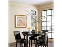 Hooker Furniture Indigo Creek Round Dining Table is constructed of hardwood solids and veneers. Includes table base, tabletop, and a 20" leaf. Black rub-through finish on the base and a cherry veneer with a protective polyurethane finish on top. $300 if purchased separately