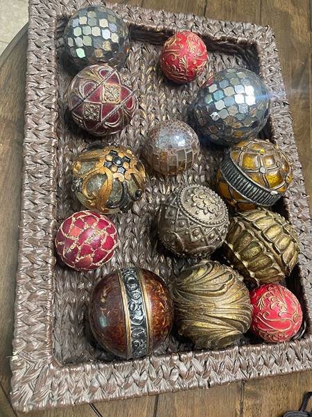 Hello I have a wicker basket with glass decorative balls for sale 17"x23"