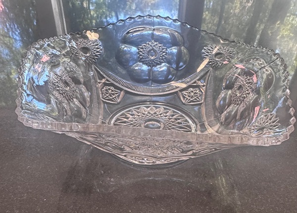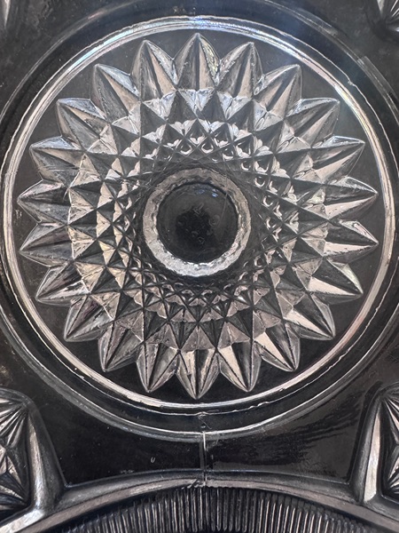 • Design: Deeply molded hobstars (starburst motifs), fan shapes, crosshatch panels, and strawberry diamond accents—creating a sparkling, cut-glass illusion.