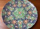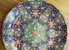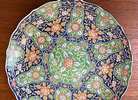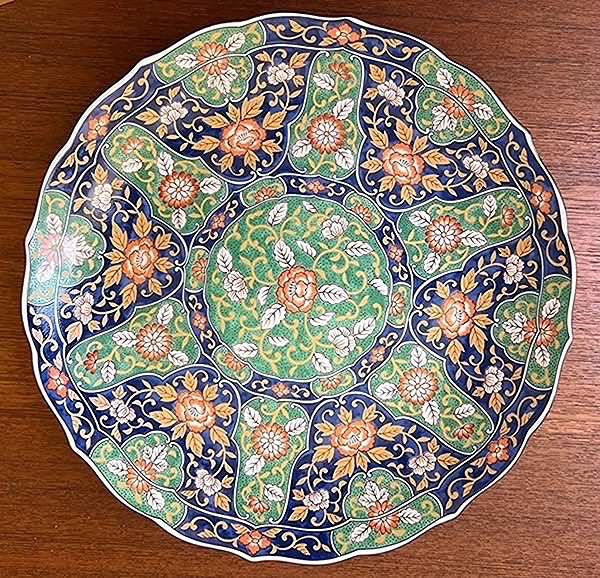 I’m unsure of the maker but it has a mark or stamp that is either Japanese or Chinese. It has scalloped edges and a beautiful, vibrant, textured floral pattern that is even more stunning in person. It measures 13” in diameter…$40 firm