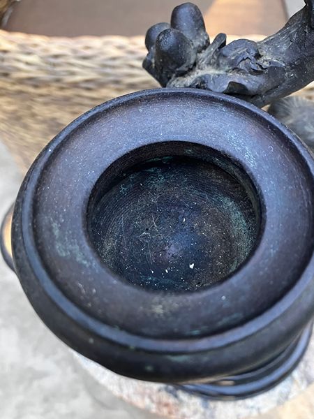 Candle holder with a bear climbing a tree that is adorned with leaves and acorns. I believe it to be spelter with a bronze finish. Base is marble 18" T and 9"W at the base. I believe this to be Maitland Smith but not for sure.