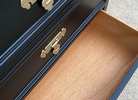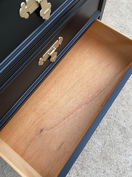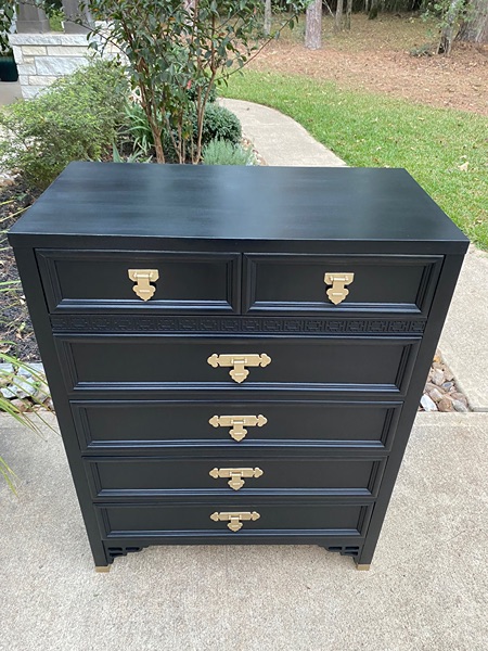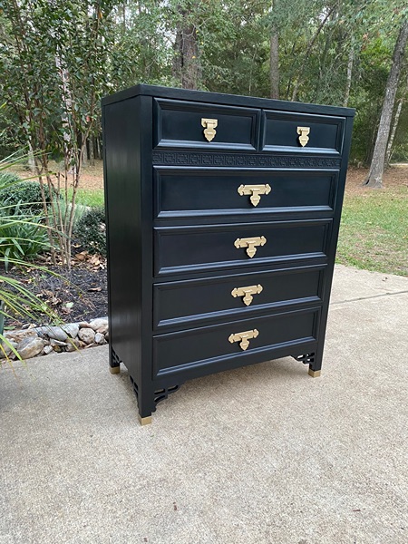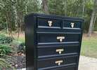 Vintage Dixie Shangri La chest of drawers refinished in Eclipse Black with Gold hardware and sealed with Black wax. 5 spacious drawers, heavy and sturdy! Pickup only in Magnolia.