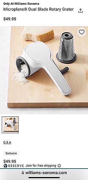 For Grating cheese, chocolate and nuts! Contains two separate drums, one for fine grating and one for coarse grating. Dishwasher safe! Compare at $49+...$25 firm