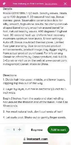 Model CD117RRN. 1-1/2 inch. Beachy waves. Heats up to 400 degrees F. 30-second heat-up. Bonus thermal glove. Tourmaline ceramic less frizz for silky smooth, high-shine results. No clamp conical-shaped barrel simply wrap hair around barrel for fast, natural beachy waves. 400 degrees F highest heat. 30-second heat-up. Uniform heat recovery maintains optimum heat levels. 5 heat settings.