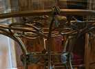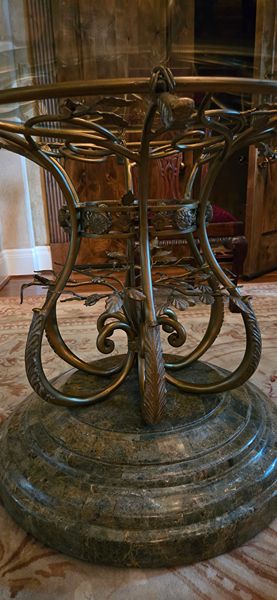 Grand 10 x 5 ft. Beveled Oval Glass Top Dining Table with 2 Pedestals! Pedestals have heavy bases and metal floral leaf design. Very beautiful!