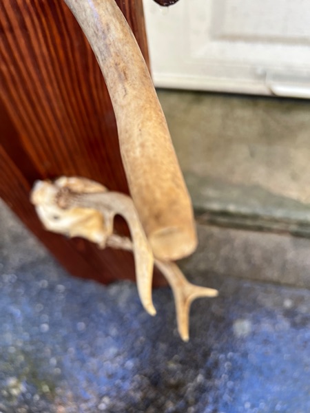 Hanging Antler rack with 4 pairs of small antlers. 72" long by 7 1/4". Great for your garage or man cave to hang things from. $20 come and get it! One horn has a break at the end. Please see pictures.
