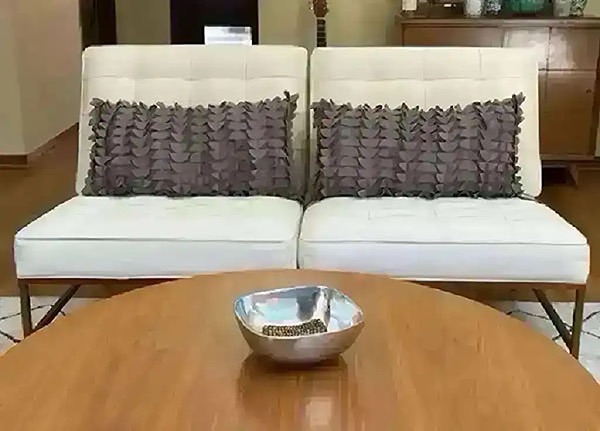 Thro by Marlo Lorenz, 14” x 27” Grand Street Faux Linen pillows, poly fill, Color: stone, Stored in plastic
