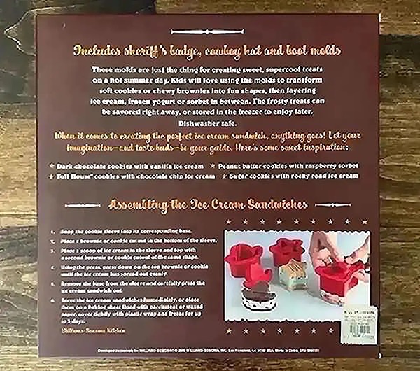 New! From Williams-Sonoma! Set of 3 “Wild West” ice cream sandwich molds in the shape of sheriff's badge, cowboy hat and boot. Includes directions…$15 firm