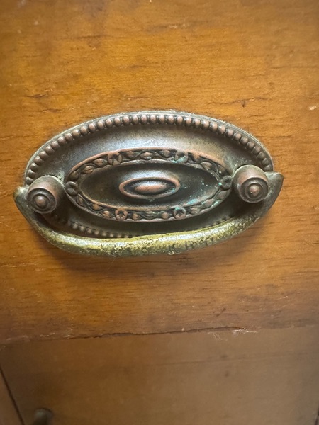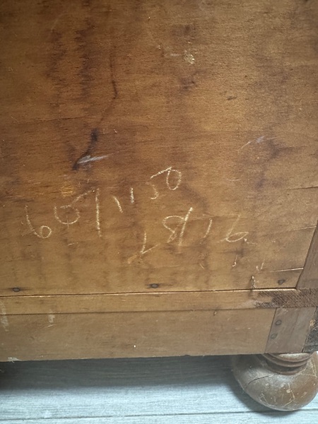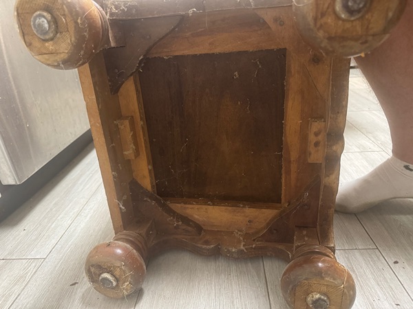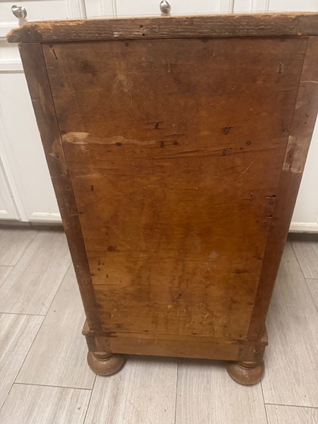 • Original use: Bedside table; the lower cabinet originally held a chamber pot (pre-indoor-plumbing era) or served as general storage.