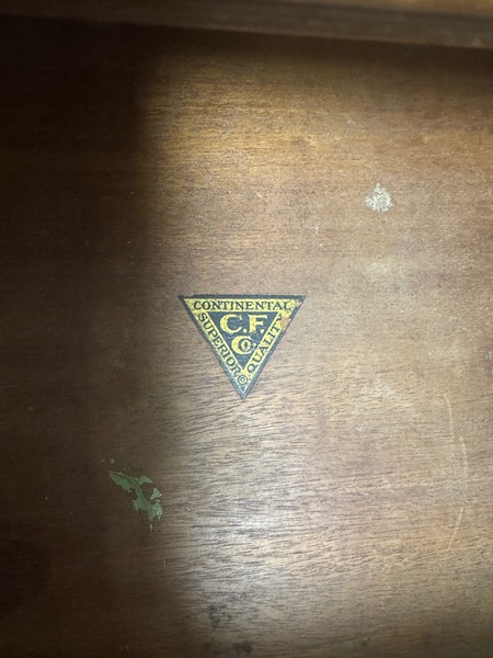 • Maker label: “CONTINENTAL FURNITURE CO. GRAND RAPIDS” triangle — 100% authentic 1925-1935 label