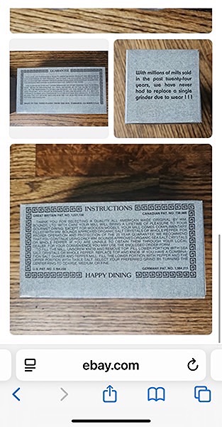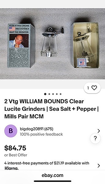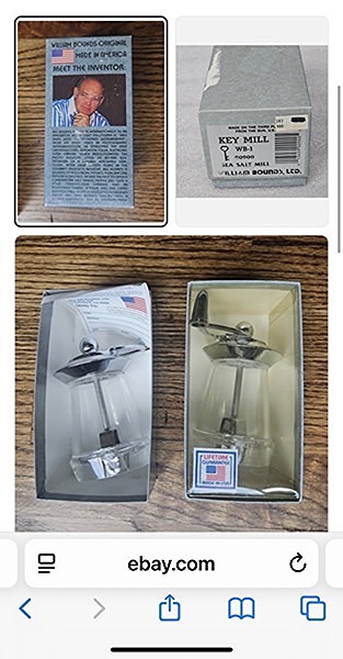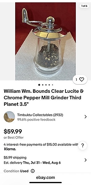 Made in the USA by William Bounds Ltd. Made of Acrylic and chrome, each stand 4” tall and can adjust for coarse, medium and fine grind…$30 total, firm