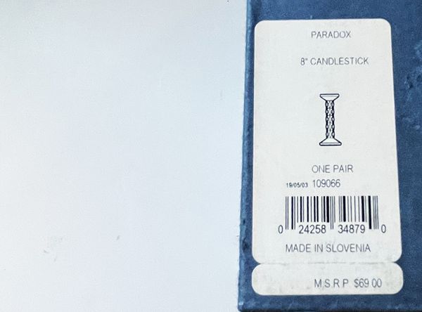 Waterford Marquis lead-crystal candlesticks stand 8-inches tall. They are from the Marquis Paradox collection. Marquis by Waterford mark is etched on the bottom. Mix with other candlesticks for a classic, eclectic look or in a grouping with other items. Brand New - no chips or cracks. Pick up at Alden Bridge in The Woodlands. Please contact me through this site or text me at 281-782-5014 for a quicker response if interested or have any questions.