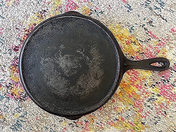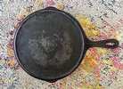 Unmarked, as far as I can tell. Measures 10” across without handle. Very heavy!…$50 FIRM