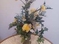 White vase with assorted arrangement. Approx. 20” tall…$25 firm