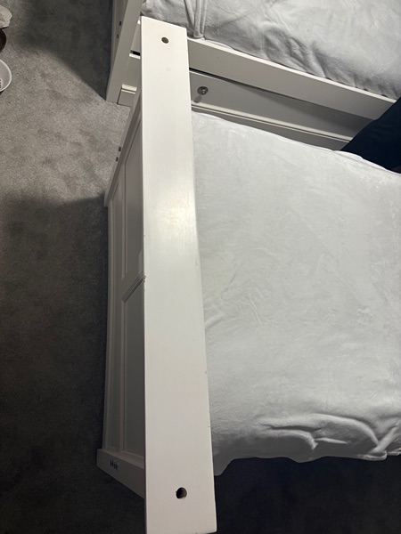Two twin beds and mattresses with foot and headboards. Bottom rollout storage drawer. Ladder and safety sideboard if using for bunkbeds.