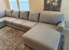If you’re facing the couch, the chaise part is on the right hand side. Pet friendly home.