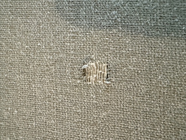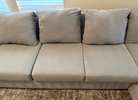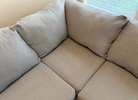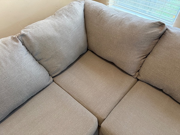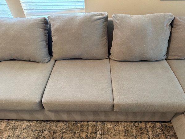 From living spaces- it’s in great condition. Shampooed the entire couch, fully washed all covers. No stains, very clean. Normal wear, small tear on chaise (size of penny)
