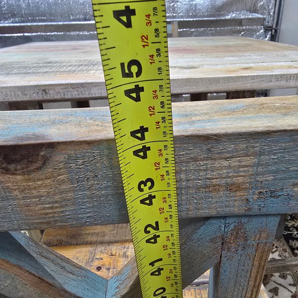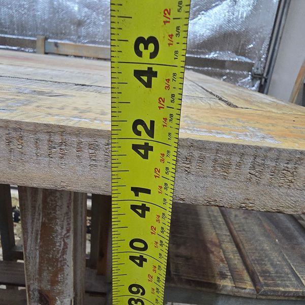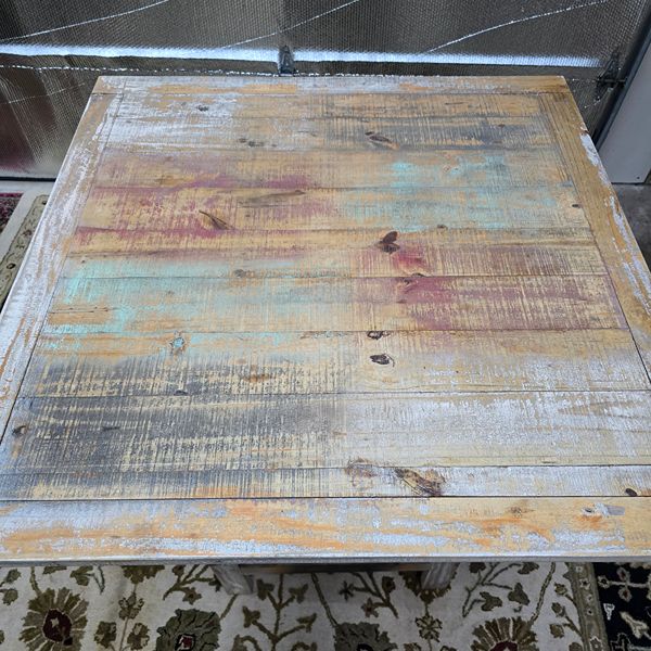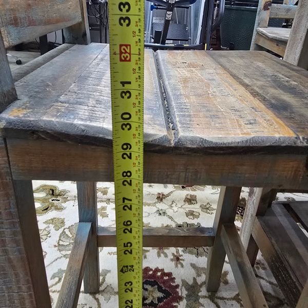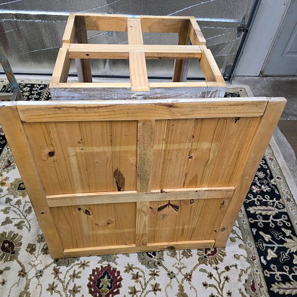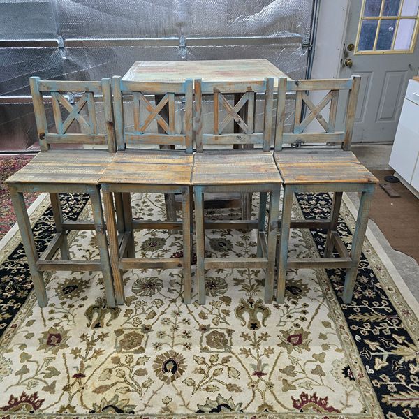 Rustic Table And 4 Chairs. The table top is not nailed down it slots into the frame (photo 6). One edge of the table is cracked and slightly loose (photo 3 and 4) can probably be repaired. Located in The Woodlands 77381. Crossroad kuykendahl road and research forest drive. Delivery is available for a fee.